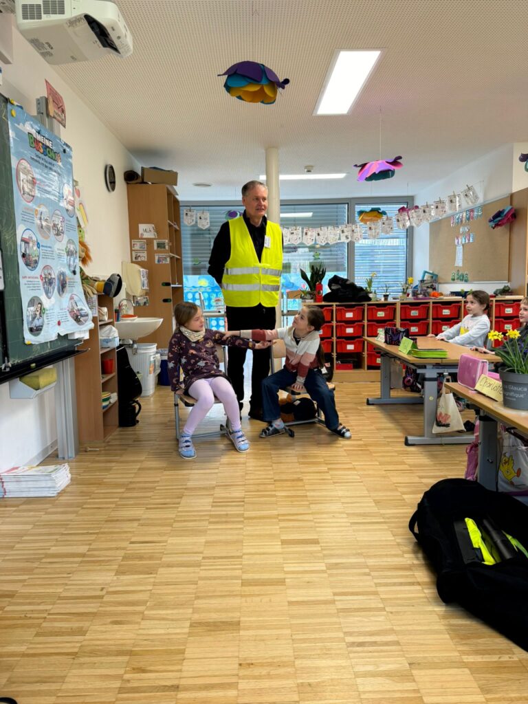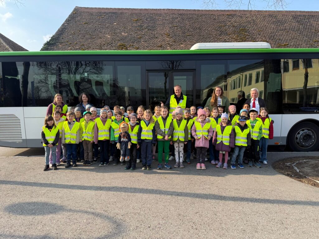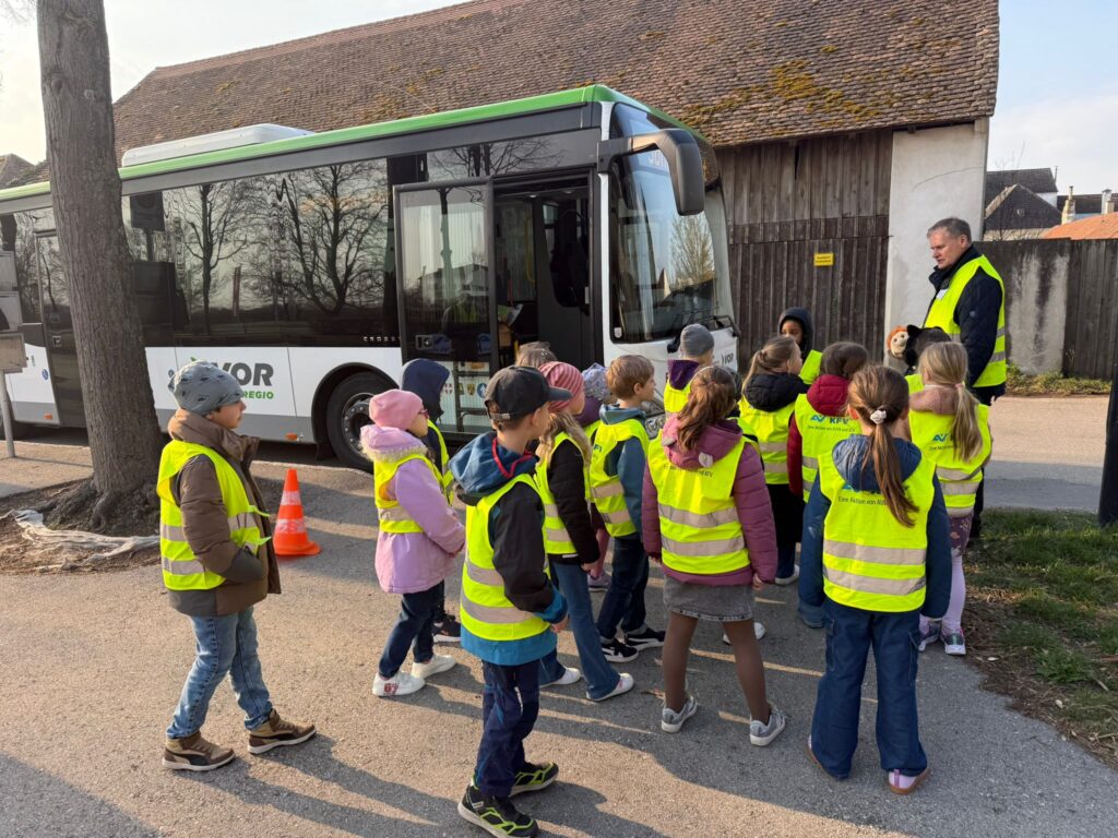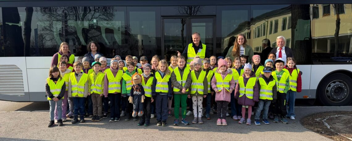 Die ersten Klassen durften Ende März alles über sicheres Verhalten vor, während und nach der Busfahrt erfahren. Im Rahmen der Aktion geht es um die Sensibilisierung für gefährliche Situationen und das Erlernen richtiger Verhaltensweisen zur Unfallvermeidung.